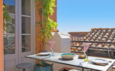 Terrasse tropézienne d’exception · Centre village · Charme authentique Belle maison de Village avec entrée, une chambre a coucher avec sa salle de bains et dressing et une autre chambre a coucher avec une salle de douche, wc indépendant placard, rangements, au 1 er etage, cuisine équipée, sejour et bureau avec 1 lit et salle...