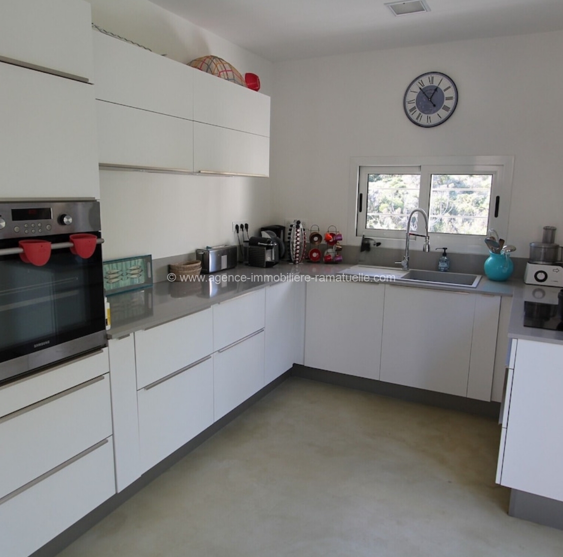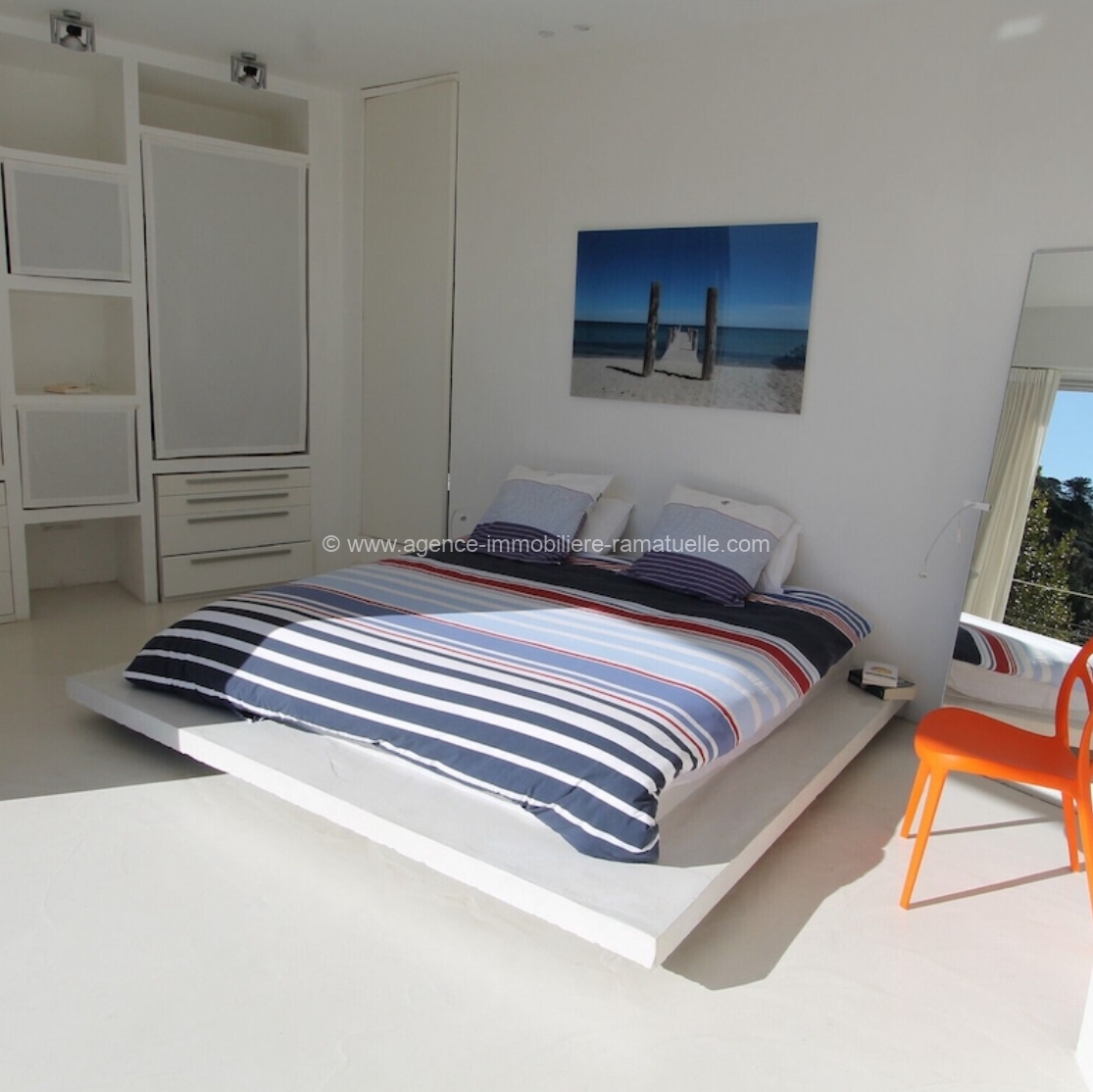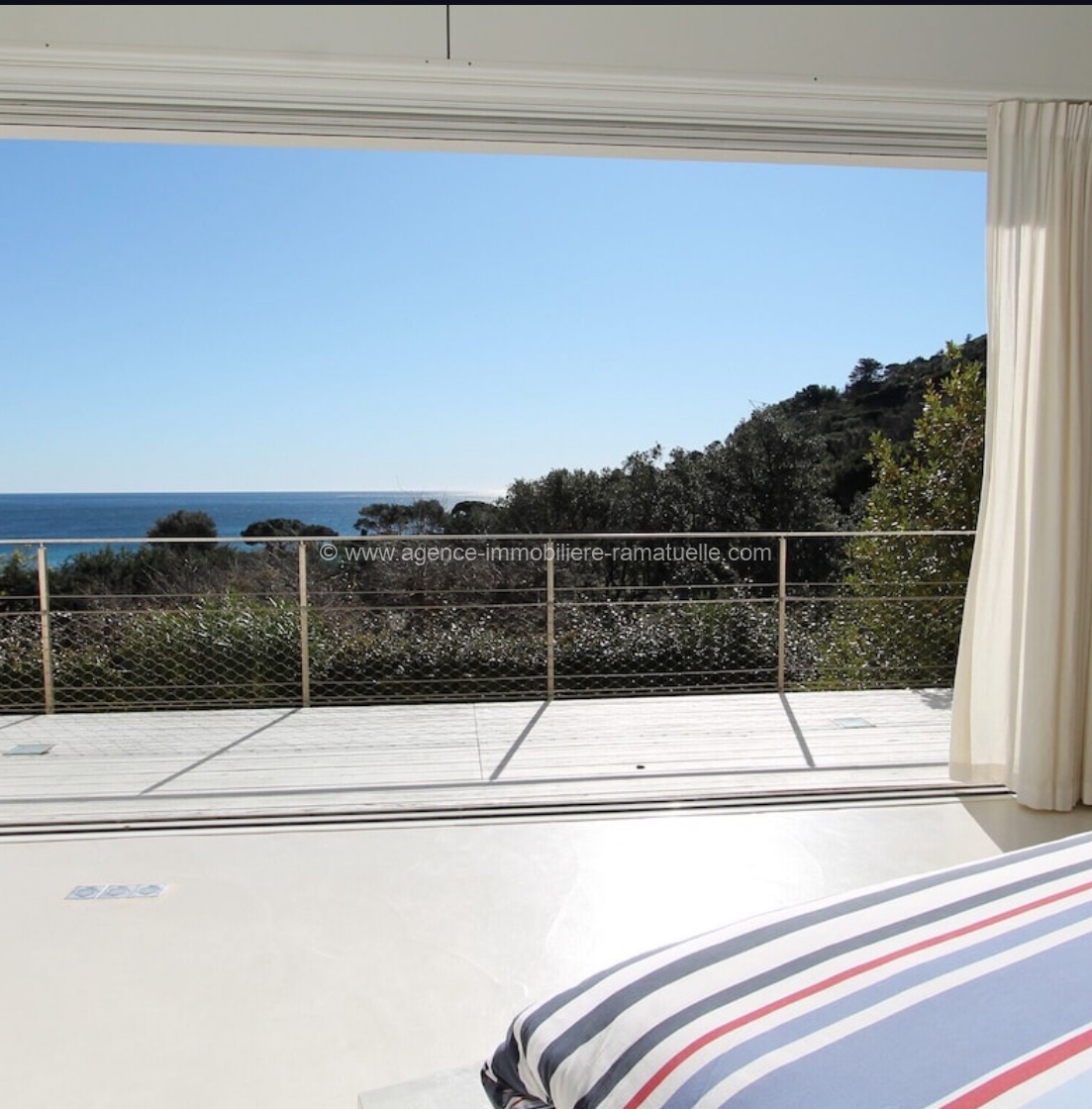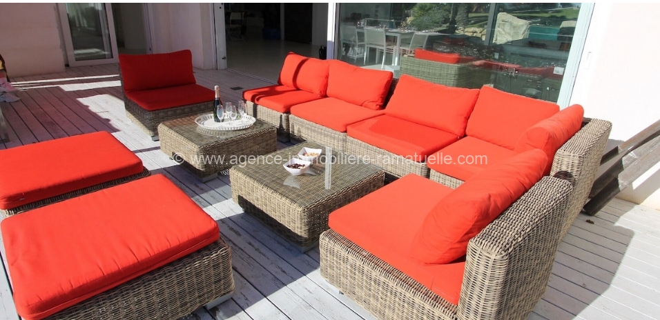la mer d’un côté, sur la piscine et le jardin de l’autre. On trouvera également la cuisine et une très