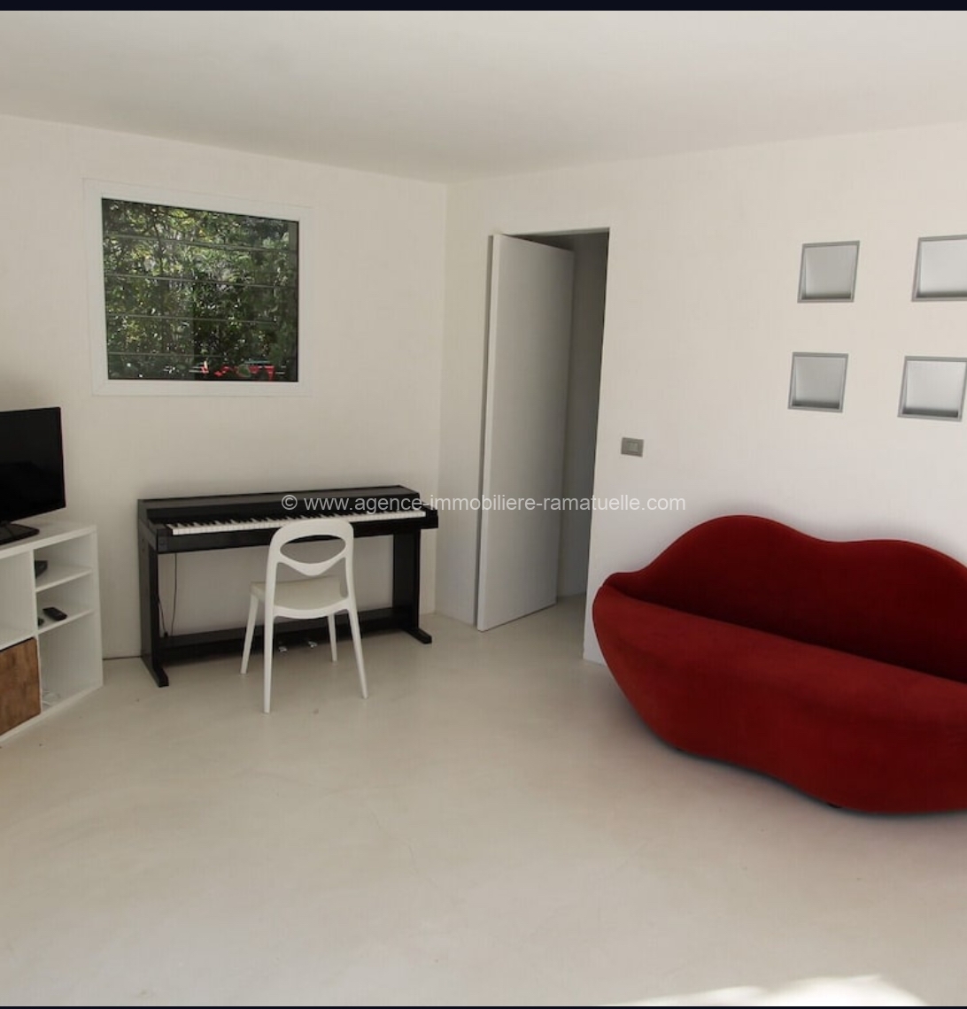 Niveau intermédiaire : Une pièce pouvant servir de petit salon donnant sur la terrasse inférieure et